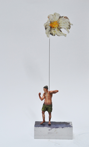 Blumenkrieger . Bronze, Alu, Öl . 32h cm