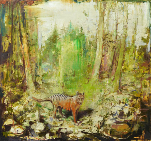 Geist einer frohen Zukunft . Öl auf Alu . 55 x 58 cm